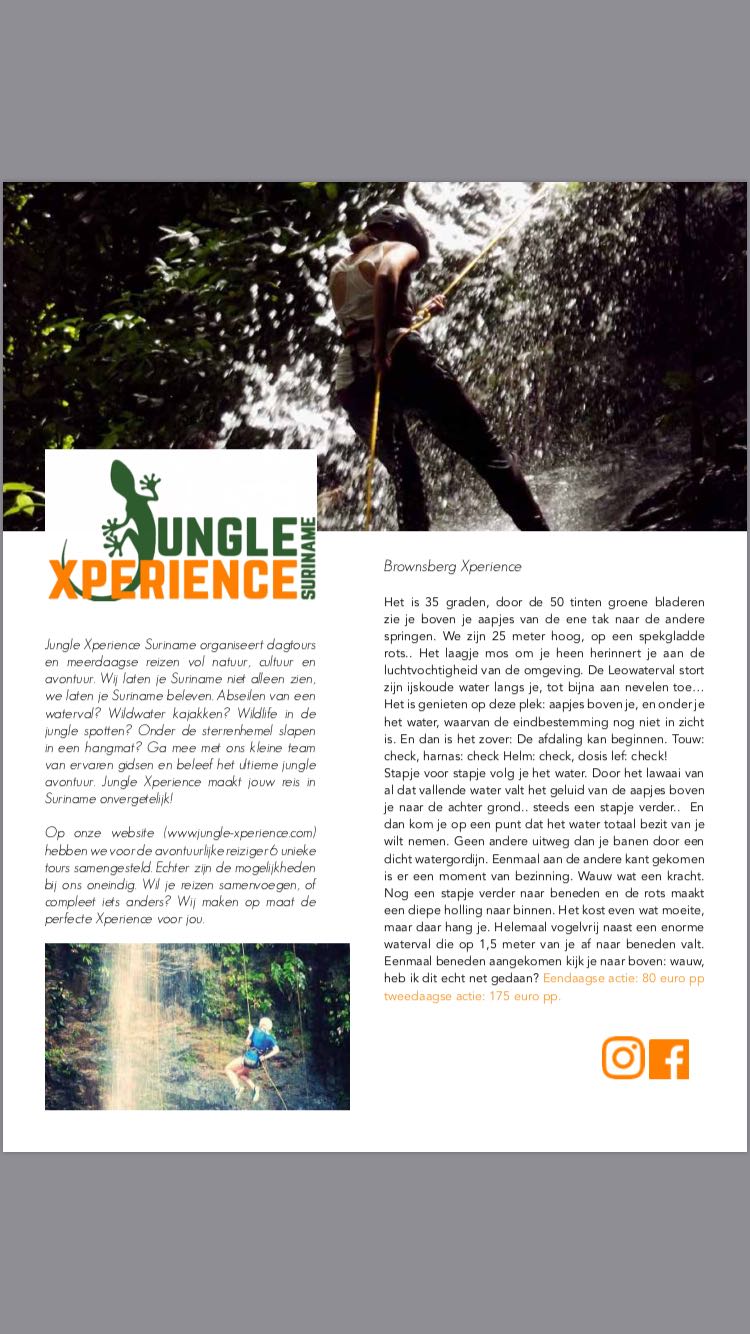 GuidePoint Suriname werkt onder andere samen met Jungle Xperience Suriname. Zij hebben 6 unieke tours voor avontuurlijke reizigers samengesteld.